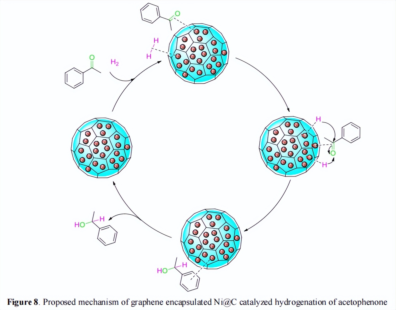 圖 8. 石墨烯包裹 Ni@C 催化苯乙酮加氫的反應機理推測